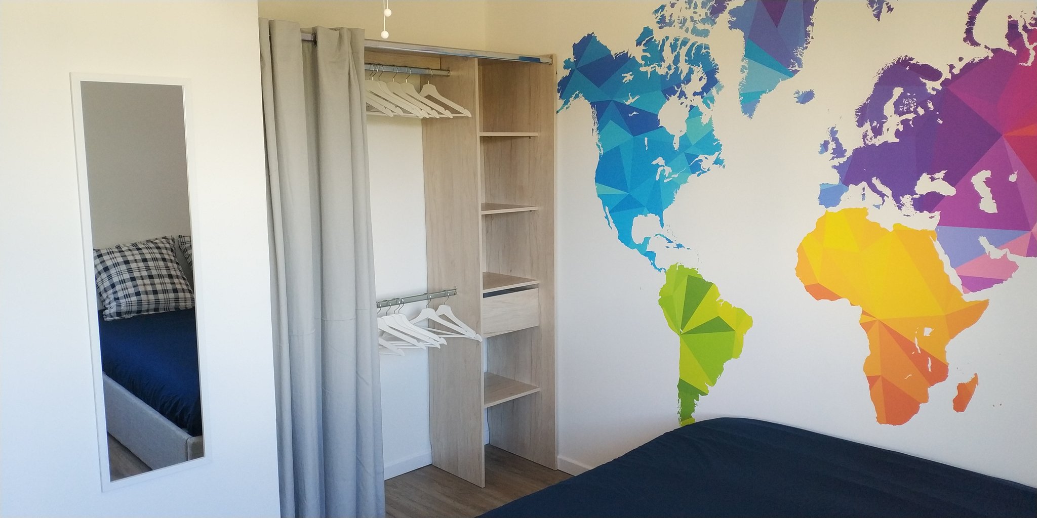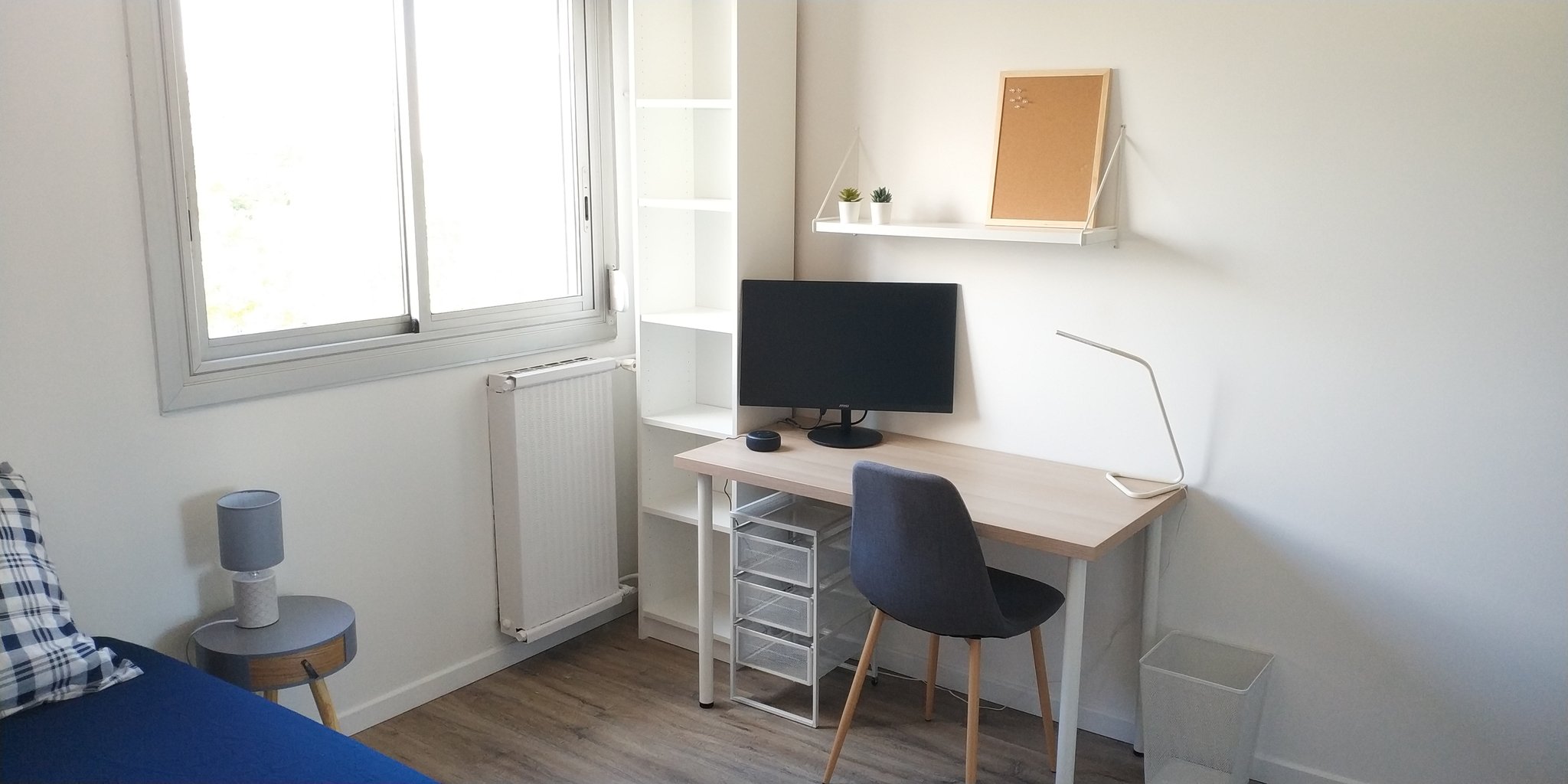 | Lit-coffre 140x190 | Bureau 120 cm | Ecran PC 27" | Chromecast TV | Echo Dot (Alexa) | Dressing 150 cm | Bibliothèque |