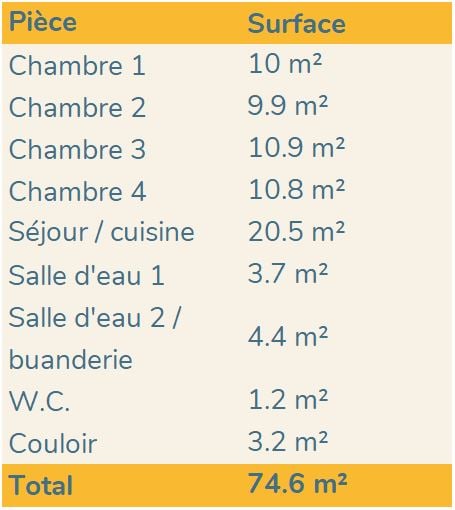 D'une superficie de 74 m², il dispose de 4 chambres d'environ 10 m², d'un séjour avec cuisine ouverte, de 2 salles d'eau et d'un balcon de 4 m² pour profiter de la vue sur le parc arboré. Une cave est également disponible au sous-sol.