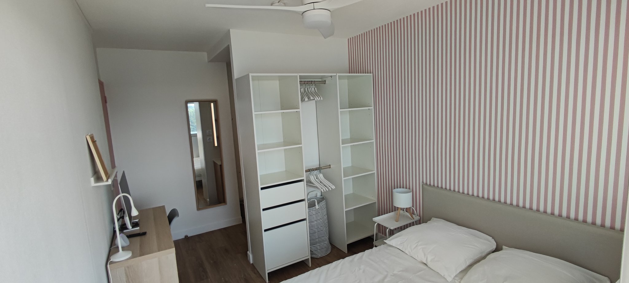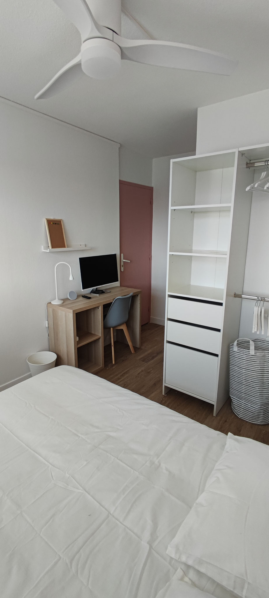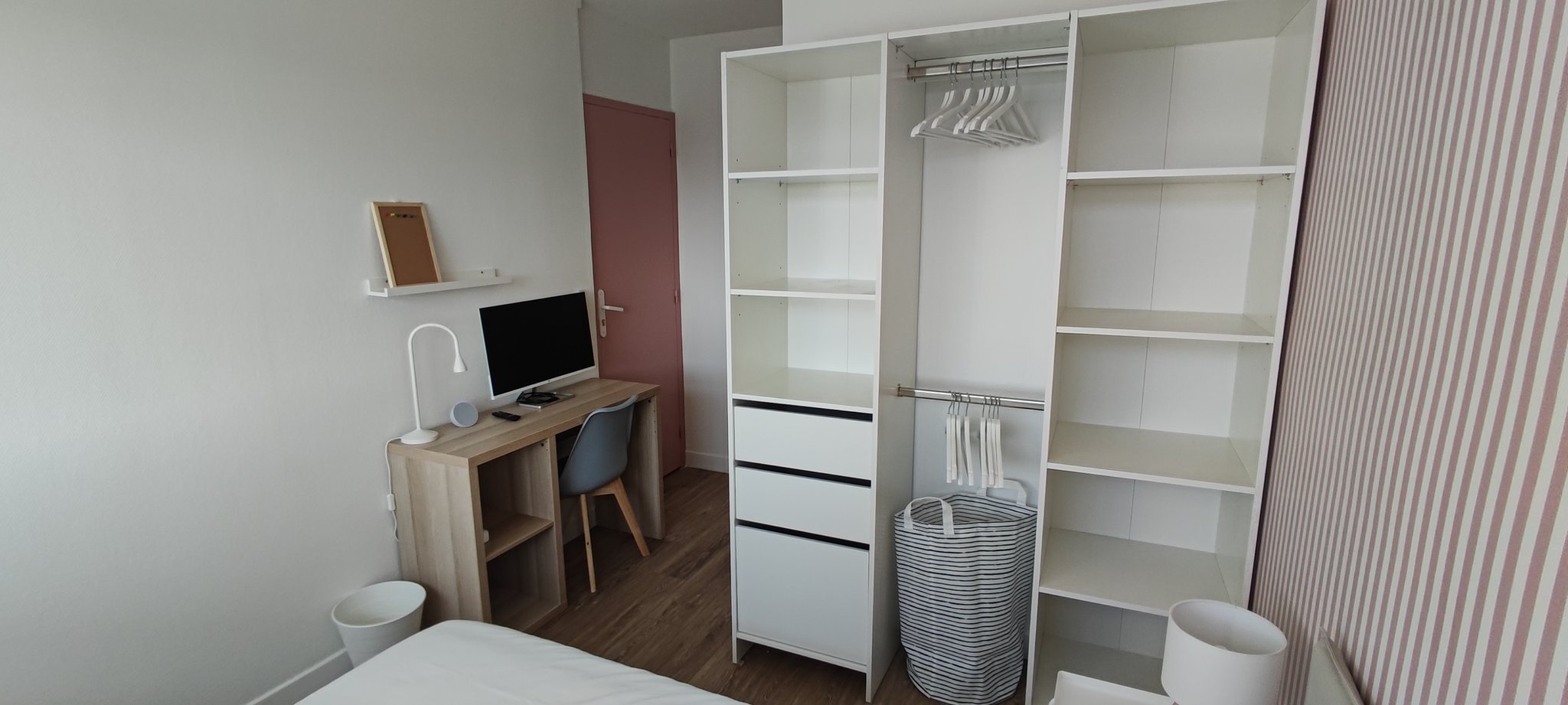 | Lit 140x190 | Bureau 120 cm | Ecran PC 27" | Fire Stick TV | Echo Pop (Alexa) | Dressing 150 cm |