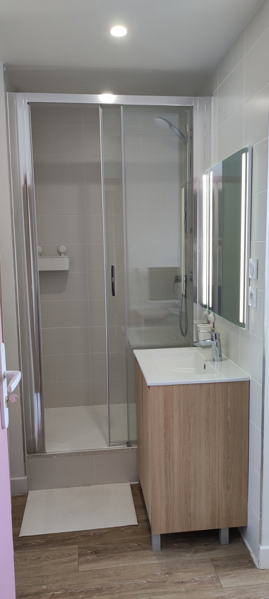 | Douche 110 cm | Meuble vasque | Rangements |